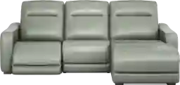 The sleek design, understated sophistication and casual profile of the Drew & Jonathan Newport sectional presents a warm, inviting feeling the whole family can enjoy. Modern in style, this sectional is upholstered in a soft, supple mint-colored top grain leather where the body touches with stylish double top-stitched seams for a luxurious look. Curved, padded arms, wide seats and an elongated footrest in the chaise provide ample space for exceptional comfort. Dual power reclining functions provide the finishing touch, allowing adjustments in the head and footrest with a patented zero gravity mechanism for the ultimate lounging experience, as well as convenient charging ports in the control panel. Upholstery: Top grain leather where the body touches. Polyurethane sides and back.