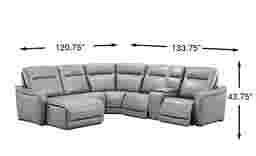 This is a substantial furniture piece with dimensions of 122 inches wide by 135 inches deep. Before ordering, we recommend measuring your living space and using painter's tape to outline the footprint on your floor. Additionally, ensure your doorways and hallways can accommodate the individual pieces of this 6-piece configuration. Its modern, low-profile design helps it feel integrated into the room rather than overwhelming it, but it does require a significant "clearance" area to fully utilize the power reclining features.