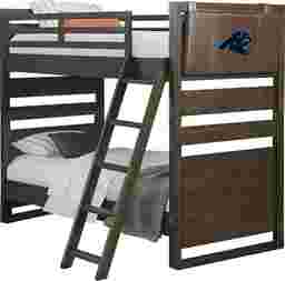 Create an ultracool sleeping space thanks to the 1st and Goal twin/twin bunk bed. Adorned with a rich brown cherry finish and a headboard featuring the logo of your little athlete's favorite team, this piece is perfect for making the most of smaller spaces. An optional trundle, sold separately, makes storage a breeze. Mattresses sold separately.