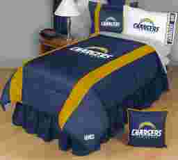 What better way to qualify for ultimate fan status than by snuggling in with the NFL Sidelines bed set each night, putting your team loyalty on display even as you sleep? This cool bed set features your favorite NFL team's logo presented proudly against team colors. The set includes one twin size comforter, one matching sham and one matching pillowcase. Accent pillow sold separately. NFL Sidelines San Diego Chargers Twin Bed Set100% Polyester Jersey Cover, 100% Polyester Batting Fill