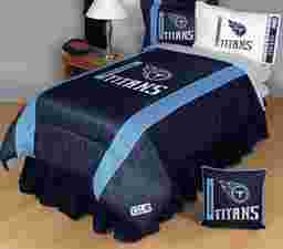What better way to qualify for ultimate fan status than by snuggling in with the NFL Sidelines bed set each night, putting your team loyalty on display even as you sleep? This cool bed set features your favorite NFL team's logo presented proudly against team colors. The set includes one full size comforter, two matching shams and two matching pillowcases. Accent pillow sold separately. NFL Sidelines Tennessee Titans Full Bed Set100% Polyester Jersey Cover, 100% Polyester Batting Fill