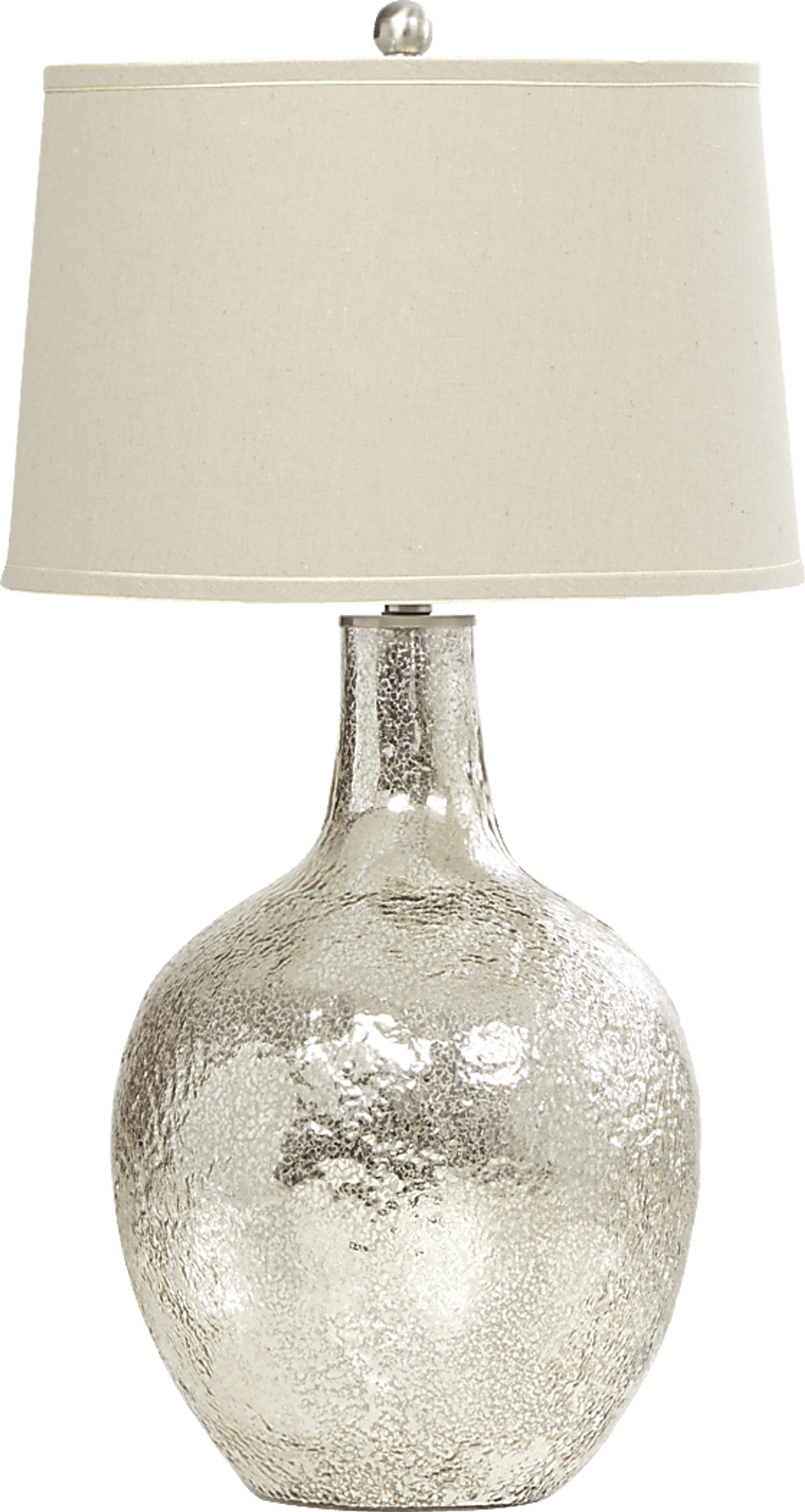 Exquisite as ever, the Nieden table lamp exudes elegance. Its glass base showcases a shimmery silver finish that reflects light across the room. This lamp accommodates standard 100-watt maximum bulbs, while a simple white drum shade tops it off.