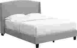 This sophisticated upholstered Niemann bed is distinguished by the gentle arch and tapered wings that extend from each side of the upholstered headboard, enveloping you in restful style and comfort. The neutral linen like fabric features a chic neutral hue and brushed nickel nail head trim on the wings nods to traditional style. Foundation required. Mattress and foundation sold separately. Customer assembly is required.