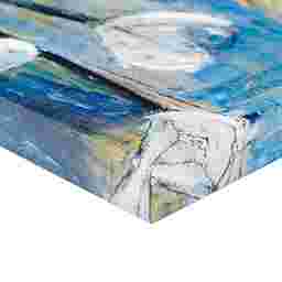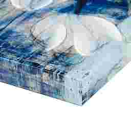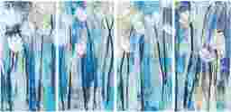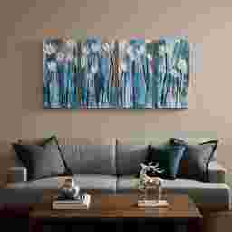 Freshen your space with the Night blossom gel coat canvas 4 piece set. Featuring an abstract floral pattern in a cool color palette of blues and greens with accents of black and white, each piece is also hand embellished creating beautiful texture and dimension. This set includes 4 panels, each piece measures 15x30 and are finished with two D-rings on the reverse making them easy to hang in any room of your home. Display all pieces together with any amount of space in between for a larger oversize art piece or hang them separately throughout your home for a more eclectic look. Spot clean only.