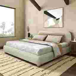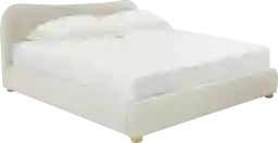 Give a timeless upgrade to your bedroom with our stylish and cozy Nikket bed. Our fully-upholstered bed is streamlined with clean and modern lines. Its beautifully curved and padded headboard anchors any room with its simplicity and elegance. Our low-profile bed is elevated upon pinewood legs to lend modern charm to your bedroom. Wrapped in the rich textures of boucle, the bed remains the perfect spot to cozy up, relax and enjoy a comfy sleep at night. Customer assembly required.
