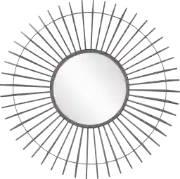 The Nilene mirror features intricate detailing of radiating bars fashioned from iron into a round, sunburst frame. The graphite finish blends to create this unique, industrial look. This collection is so versatile that many of our accent tables and decorative accessories can easily be paired up to make a statement. Keyhole slots are manufactured into the back of the mirror so the piece is ready to hang right out of the box.