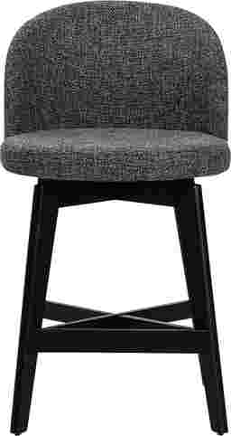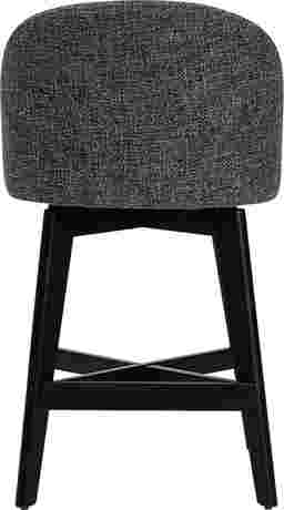 The Nilesh counter stool seamlessly combines luxury and functionality with its softly rounded back, offering wraparound comfort for your counter-height dining area. The padded seat cushion enhances comfort, while the 360-degree swivel plate maximizes ease and convenience for dining or socializing. Featuring a solid wood base finished in black, it's perfect for modern counter setups. The footrest provides additional support, allowing you to comfortably relax your legs. Upholstered in performance fabric, this stool ensures stress-free meals with easy maintenance and lasting durability, blending style and practicality in any contemporary space. Customer assembly is required.