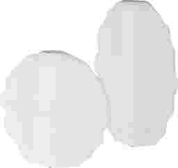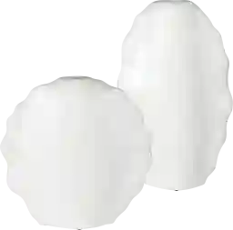 The Nilima set of two ceramic vases model organic curved edges that create an artistic look and are finished in a modern matte white glaze. Safe for outdoor use, but protection from freezing temperatures is recommended. Sizes: S-16x16x5, L-12x20x5.