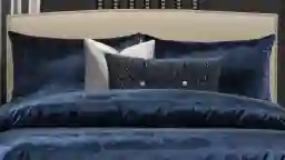 The Nimue duvet cover set is a blue velvet that provokes a mystery with its depth of color. The 16 x 16 throw pillow is velvety-soft in silver with zipper closure for easy on and off. The 26 x 14 button tufted throw pillow is in blue, textured with a suede, matte finish. The set includes a duvet cover with zipper closure, down alternative comforter buttoned inside duvet cover, two bed-pillow shams with zipper closures, one 16 x 16 toss pillow and one 26 x 14 button tufted toss pillow. Eight hidden buttons are sewn inside the duvet cover to keep the down alternative comforter insert securely in place. The duvet cover is backed with an ultra-soft microfiber which pairs maximum comfort with elegant style. The duvet cover is already filled with an eco-friendly, down-alternative comforter. The comforter is machine washable.