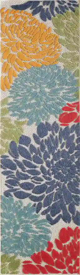 A pop of color can transform any back porch, patio area, or playroom into an oasis for relaxation and fun, and this durable runner is sure to brighten up any area in or around your home. The beautiful tropical leaf design, cheerful colors, and high-low technique create an exciting multidimensional effect, adding depth and dimension to your favorite indoor or outdoor space. Because these pieces are long-lasting and easy to clean, you can enjoy your favorite space without fear of staining or fading, even in the most high-traffic or spill-prone areas of your home. Whether its a quiet spot in the sun or a central dining area, you can spend more time enjoying your space and less time worrying about maintenance. Each rug is machine made using state-of-the-art, computer-driven looms, and polypropylene yarns create a low profile pile thats stain resistant and fade resistant. Delight in a modern combination of rich color, surprising comfort, and exceptional durability that fits both your home and your lifestyle effortlessly. For indoor or outdoor use.