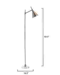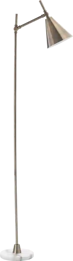 Elegant with a touch of old-world charm, the Nizzo Brass Floor Lamp feels like a thoughtful companion to late-night reading and slow, intentional mornings-the slender brass frame rising gracefully from its marble base, adjustable and purposeful, while the warm metallic shade casts a focused glow that feels both intimate and refined. It carries the romance of a beautifully lived space where form meets function and every detail feels chosen, not rushed, so bring it into your home and let it quietly illuminate the moments that make your space feel unmistakably yours. Partial assembly may be required.