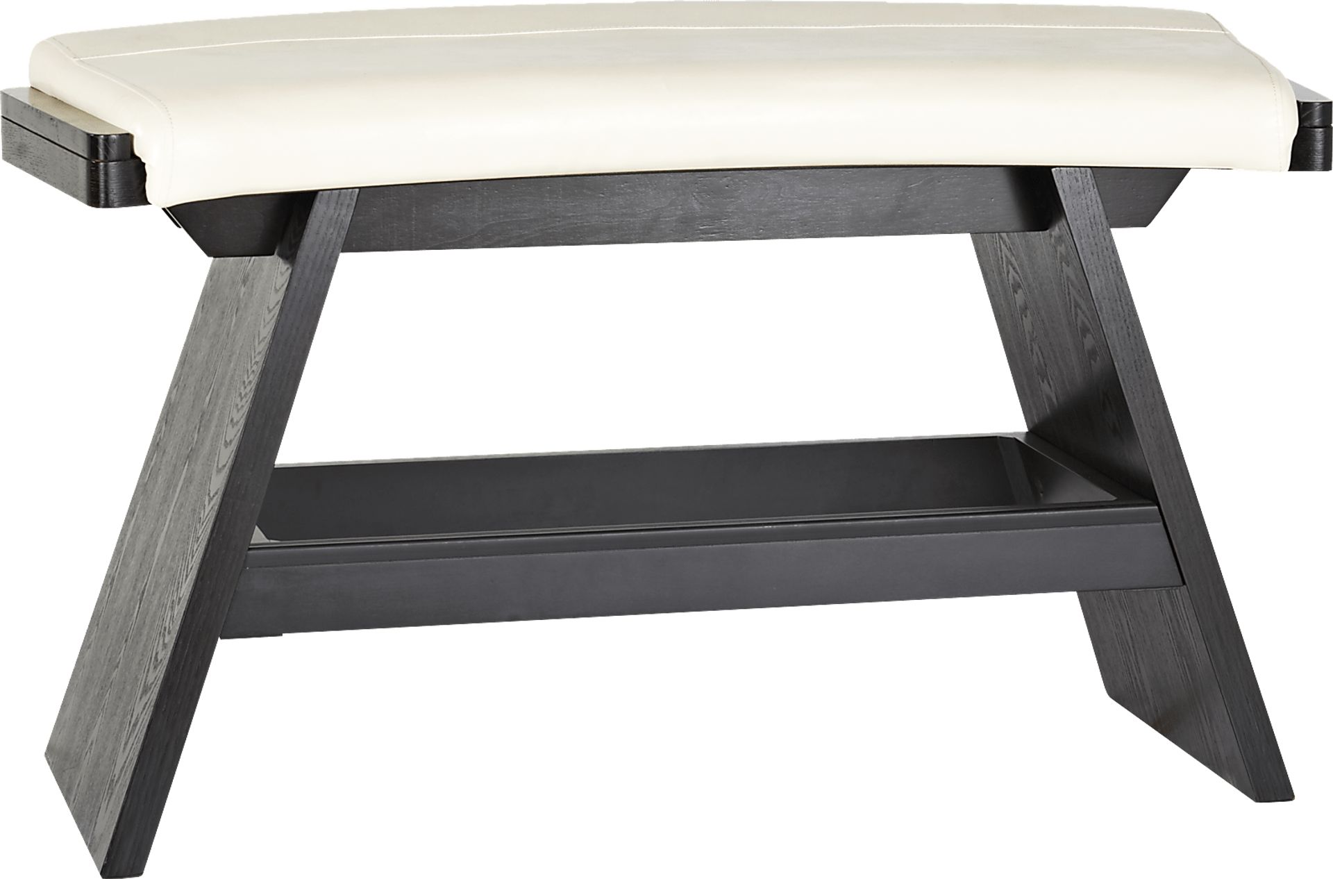 With its curved shape and vanilla colored Ultrahyde seat the Noah bench make a delightful addition to its matching pub table. The supportive base is made of birch solids and ash veneers in a rich chocolate finish.