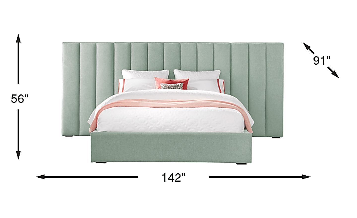 A chic focal point in any contemporary bedroom, the Noelle wall bed features a stunning channeled upholstered design. Covered in soft mint fabric, this striking bed's sleek lines and tall headboard offer an impactful counterbalance to the plush fabric upholstery. Including side wings on either side of the headboard, this wall bed makes a dramatic statement. Mattress and foundation (if required) sold separately. Bed shown is queen size.