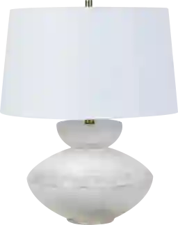 The unique shape of the Nomes Bay lamp adds a contemporary flair to the design and the mottled gray and white hand finish is the epitome of modern sophistication with a sense of artisanal craftsmanship. It is complimented by a white linen drum shade. Partial assembly may be required.