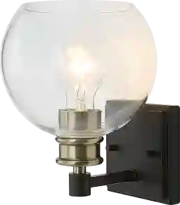 Timeless lines make the Nora Gate sconce an understated classic. Finished in a combination of matte black and plated antique brass then topped with sparkling clear round glass shade. This sconce perfectly illuminates your walk way spaces. Professional installation by an electrician is recommended.