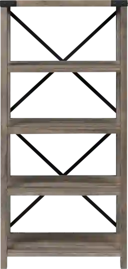 Beyond providing a rustic, industrial aesthetic, the X-shaped metal backings are vital for lateral stability. This feature prevents the "racking" or swaying that can occur with taller shelving units over time. Combined with the metal corner accents, these structural elements ensure the frame remains square and secure, even when the four spacious shelves are fully loaded.