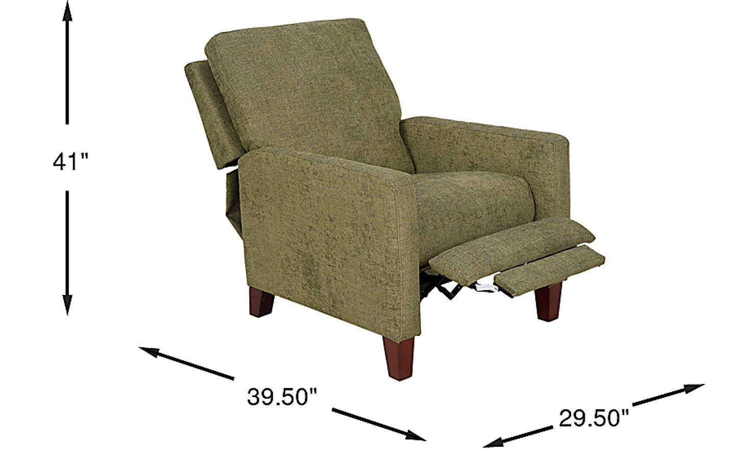 When it's time to unwind, the best seat in the house also has a surprise in store if you have a Norwich push back recliner. The soft, sleek avocado green upholstery that pads every side of this chair makes it the ideal accent piece. When you recline, a hidden flipper ottoman provides length and support for even the tallest family members. Upholstery: 100% polyester.