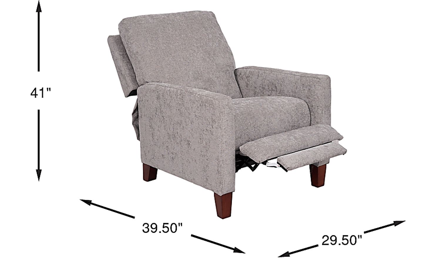 When it's time to unwind, the best seat in the house also has a surprise in store if you have a Norwich push back recliner. The soft, sleek granite gray upholstery that pads every side of this chair makes it the ideal accent piece. When you recline, a hidden flipper ottoman provides length and support for even the tallest family members. Upholstery: 100% polyester.