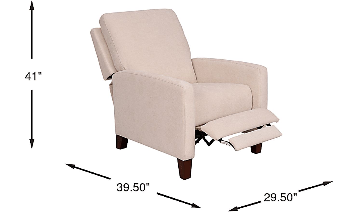 This chair features elegant tapered legs that provide a sturdy foundation. To protect your flooring and prevent the chair from shifting during the push-back motion on smooth surfaces like hardwood or laminate, we recommend placing a non-slip furniture pad under each leg or positioning the recliner on an area rug. This ensures the chair remains anchored and protects your home's finishes.