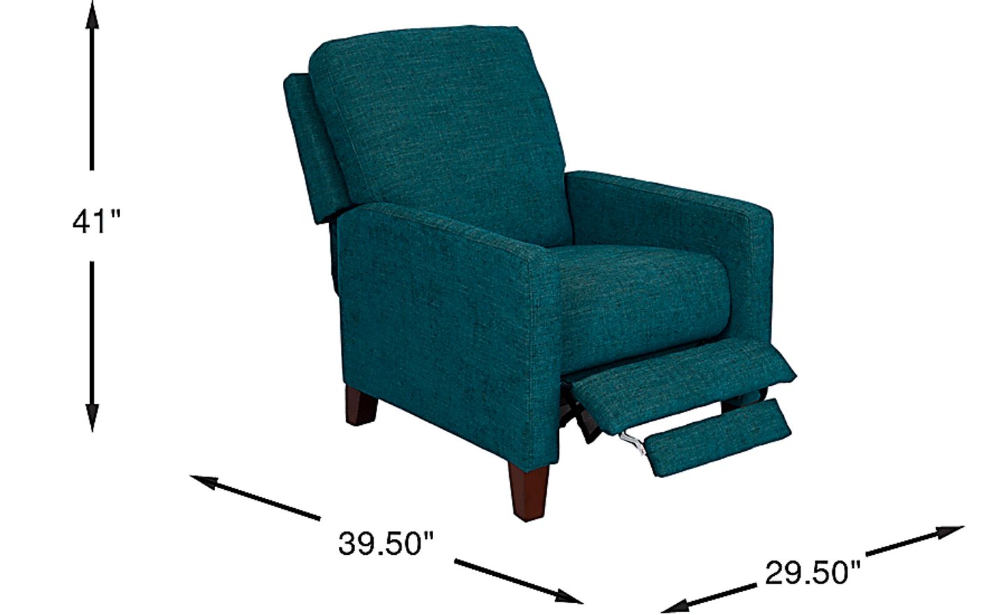When it's time to unwind, the best seat in the house also has a surprise in store if you have a Norwich push back recliner. The soft, sleek teal blue upholstery that pads every side of this chair makes it the ideal accent piece. When you recline, a hidden flipper ottoman provides length and support for even the tallest family members. Upholstery: 100% polyester.
