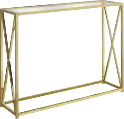 The sophisticated minimalist style of this rectangular Nottoway console accent table will be the most multi-functional furniture piece you own. The thick clear tempered glass table top provides enough space to set a lamp, pictures, books or decorative objects. This chic table is framed in a sturdy high polish gold metal base with an X design on the sides for a touch of glamour. Compact and clean lined for small spaces, the height makes it ideal to set out drinks and hors d'oeuvres when entertaining. Whether you use this in an entryway, hallway, office space, or behind your sofa this versatile accent console table provides multiple uses. Customer assembly is required.