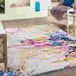 With its sophisticated palette of grey, purple, gold, beige, blue, and yellow, this rug is designed to anchor contemporary, modern, or eclectic interiors. The abstract, floral-inspired design acts as a "piece of art for the floor." You can easily coordinate your room by pulling any of the secondary colors from the rug's pattern to match your throw pillows, drapery, or wall art, creating a professional, curated look.