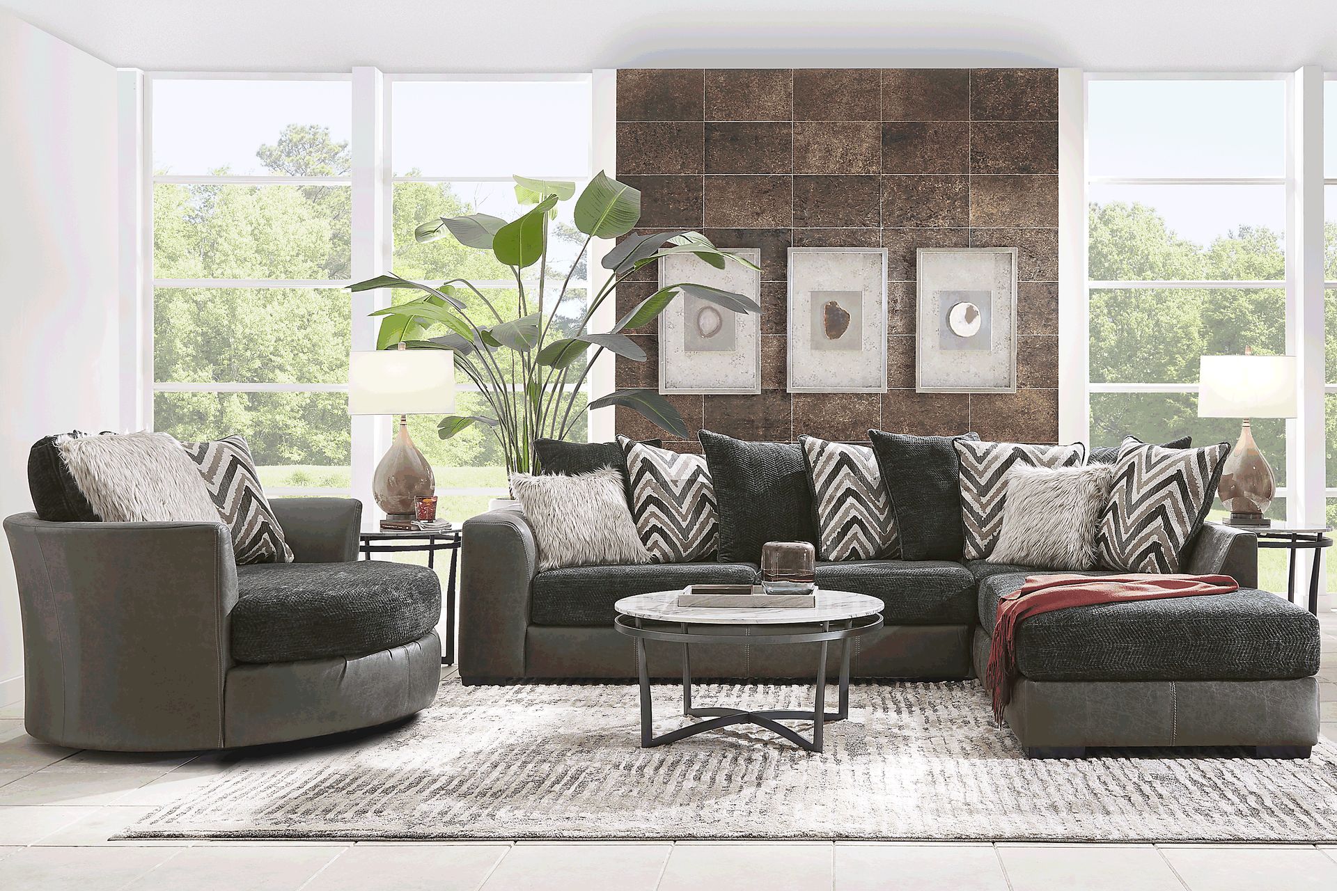 Invite comfort into your home with the Novelia sectional. Upholstered in soft woven fabric, this collection boasts multitextured scatter back pillows in eye-catching shades of black, beige and brown. The chaise provides easy leisure as reversible seat cushions promise long-lasting style. For contrast, dark seat cushions top the charcoal base while black-finished block legs complete the look. Sleek track arms enhance the contemporary design, making it a focal point of any room. Upholstery: 100% Polyester