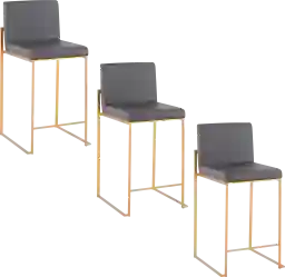 Contemporary elegance at its finest, the Nowotny Gray Gold Counter Height Stool, Set of 3 features an extra-wide and extra comfortable look of leather upholstered seat, a high padded backrest, and a stylish metal frame. The perfect contemporary counter stool, the Nowotny is available in a variety of sleek color combinations, choose the look that best fits your dining space. Customer assembly required.