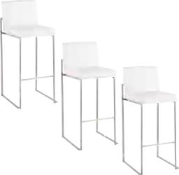 Contemporary elegance at its finest, the Nowotny V White Barstool, Set of 3 features an extra-wide and extra comfortable look of leather upholstered seat, a high padded backrest, and a stylish metal frame. The perfect contemporary counter stool, the Nowotny is available in a variety of sleek color combinations, choose the look that best fits your dining space. Customer assembly required.