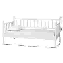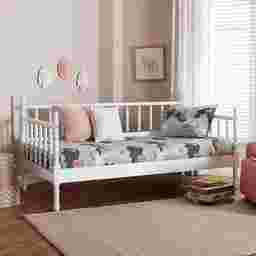 Absolutely. With a footprint of 79”W x 42”D, this daybed is an excellent space-saving solution for multi-functional rooms. Its mid-century inspired silhouette and crisp white finish help brighten smaller areas without overwhelming the floor plan. In a home office, it functions as a sophisticated deep-seated sofa during the workday and easily transitions into a comfortable guest bed at night.