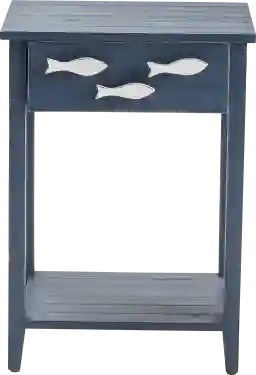 The deep blue sea is here in the Nuello accent table with fish hardware. This piece offers a deep blue wood finish that evokes the deep sea, and one hand storage drawer with lovely white wood finish drawer pulls for a splash of brightness. This piece radiates the energy of the ocean, with coastal style that brings a cheery feel to any room you choose. Customer assembly is required.