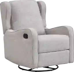 Designed with ultimate comfort in mind, the Nursery Camora Gray Swivel Glider Recliner offers soft plush seating, and smooth rocking, gliding, and reclining capabilities. Create a soothing haven for you and your baby to sink into for late night feedings, bedtime stories, and lullabies with the Camora Swivel Glider Recliner. With its durable stain resistant polyester fabric and solid wood frame, this manual swivel glider recliner is the perfect complement to any room, including your baby's nursery. Customer assembly is required. 100% Polyester. Frequent vacuuming or light brushing is recommended to remove dust and grime. Clean with water based or solvent based cleaning solution or a conventional upholstery cleaning system. Do not remove cushion covers for separate dry cleaning or washing, even if they have zippered casings.