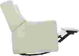 The wingback-style Cradle Song white swivel glider recliner takes the phrase "rest and recharge" to an entirely new level with its built-in USB port, smooth swivel motion, and soothing back and forth gliding. Lean back and kick up your feet at the touch of a button - this recliner's quiet electronic control panel is cleverly hidden in the armrest to maintain its sleek form. Enjoy your moments with your new little one as it cradles you and baby during feedings, story time, or nap times. Recharge your body, mind, and electronics in ultimate comfort and modern style. Removable lumbar pillow included. 100% polyester. Clean with light foam cleaners. Customer assembly required. Removable lumbar pillow included.