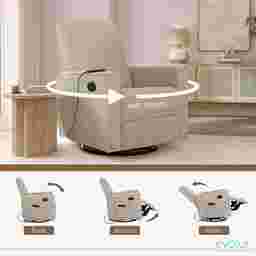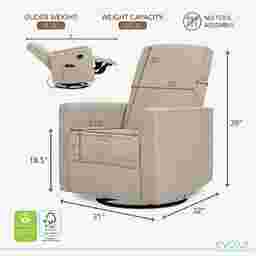 With a width of 32 inches and a depth of 31 inches, this chair features a relatively compact footprint compared to standard oversized recliners. Its efficient design allows it to provide luxury features, like a full recline and 360-degree swivel, without overwhelming smaller living spaces or tight nursery corners.