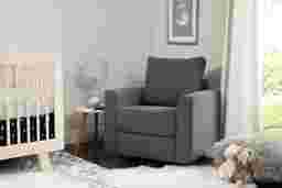 Gently rock baby to sleep in cozy comfort with the Harmony Fields Gray swivel glider. Plush cushions provide perfect support for mom and baby to snuggle up. Upholstered in a water-resistant poly-woven blend of soft fibers, it is a practical yet stylish nursery staple for the modern mom. 100% polyester. Clean with light foam cleaners. Customer assembly required.