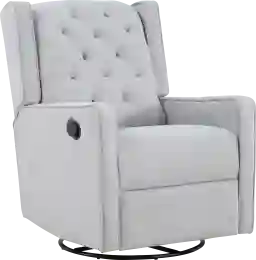 The Nursery Sheadon Gray Swivel Glider Recliner is high on style with the smartly tufted back cushion and softly rounded wingback design. The 360-degree swivel motion offers ease of use and ability to fit in a smaller space. The rich, easy to clean fabric and a simple pull handle release for reclining are especially important features when using in your nursery. With the soft quiet glide, you and your baby will rest easy. Customer assembly required. 100% polyester fabric: Clean with soft, damp cloth or dry clean. No brushing.