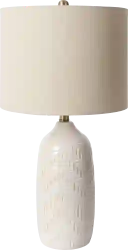 Light up your room with the Nuttall Alley lamp This modern-style lamp is made of white ceramic for a sophisticated look. The white linen shade softens the brightness of the light to create a warm ambiance. With a total height of 25 inches tall, this lamp will fit perfectly in any living space while adding style and illumination. Add this stylish table lamp to your home today Partial assembly may be required.