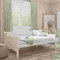 This model is a full-size daybed with a depth of 57 inches. It is designed to accommodate a standard full mattress (approximately 54" x 75"), offering a significantly more spacious sleeping area than a traditional twin. This makes it an excellent choice for adult guests or for use as a primary bed in a studio apartment where space is at a premium.