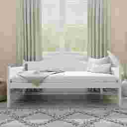 Say hello to Southern hospitality. The Nyala daybed is quintessential charm with built-in convenience. This country Farmhouse twin daybed features hardwood construction with white veneer finish. The timeless beadboard design with camelback and low English arms are as inviting as a front porch and a glass of sweet iced tea. Whether you need extra seating or a place to sleep this daybed does it all. Includes suspension deck. Accommodates one twin mattress. Mattress not included. Customer assembly is required.