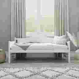 Say hello to Southern hospitality. The Nyala daybed is quintessential charm with built-in convenience. This country Farmhouse twin daybed features hardwood construction with white veneer finish. The timeless beadboard design with camelback and low English arms are as inviting as a front porch and a glass of sweet iced tea. Whether you need extra seating or a place to sleep this daybed does it all. Includes suspension deck. Accommodates one twin mattress. Mattress not included. Customer assembly is required.