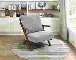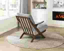 In a world of fleeting trends and passing fancies, there exists a chair that makes you believe in enduring charm. With the graceful lines of mid-century modern design and the quiet confidence of a walnut wood finish, this Nycio chair doesn't shout for attention it earns it. Wrapped in soft, textured chenille fabric, it comes dressed in two classic tones: a warm, inviting beige that beckons you to linger a little longer, and a cool, modern gray that whispers of quiet evenings and thoughtful conversation.The angled back, the low-profile arms, the gentle recline-each element is a love letter to comfort and craftsmanship. It's not just a seat; it's an embrace at the end of a long day. A partner in your favorite reading nook. A silent guest in your cozy living room stories. Customer assembly is required.