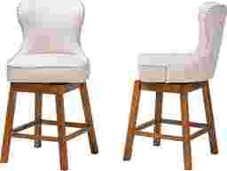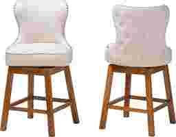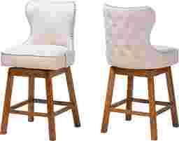 Featuring chic, modern design, the Nylic beige swivel counter stool, set of 2 is a superb addition to any kitchen or lounge area. This sleek piece consists of a solid wood frame padded with foam and upholstered in soft fabric. Its cut-out backrest features a gorgeous button tufted design outlined by an elegant nail head trim for a touch of modern glamour. The Nylic features ergonomic footrests on each side for enhanced comfort. A swivel seat encourages carefree leisure, making the Nylic counter stool a lovely choice for any occasion. Customer assembly is required.