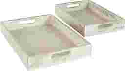 Bring refined elegance into your home with the Nytri tray set, where timeless sophistication meets artisanal charm. Handcrafted from solid mango wood, these trays combine strength with natural beauty for pieces that last. The washed cream finish with soft brown accents creates a warm, vintage-inspired look that complements any decor style. Intricate hand-carved mandala interiors elevate each tray into a work of art, blending function with beauty. Perfect for serving, organizing, or styling, the Nytri set adds both versatility and luxury to your living space. Customer assembly is required.