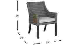 Make yourself at home outside with the Oak Park arm chair. Ideal for any relaxing outdoor occasion, this chair is durably made with textured handwoven brown-gray wicker over a fully-welded rustproof aluminum frame. The cozy seat cushion is covered with solution dyed performance fabric in a fresh hydra blue color. Sturdy metal legs in a warm mocha finish provide support. High performance acrylic fabric.