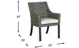 Make yourself at home outside with the Oak Park arm chair. Ideal for any relaxing outdoor occasion, this chair is durably made with textured handwoven brown-gray wicker over a fully-welded rustproof aluminum frame. The cozy seat cushion is covered with solution dyed performance fabric in an off-white color. Sturdy metal legs in a warm mocha finish provide support. High performance acrylic fabric.