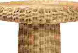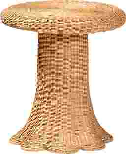 Add a dash of paradise with the Oakan Rattan End Table, featuring a round top, scalloped pedestal base, and fully assembled boho style charm.