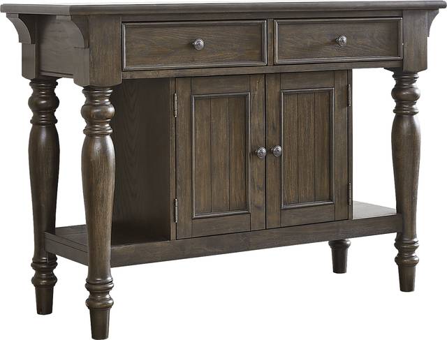 Add convenient storage to your dining room with the Oakdale server. Two drawers and two cabinets with built-in shelving offer plenty of space to keep china or other necessities close at hand. Oak veneer construction in a rich brown finish makes this piece truly stand out.