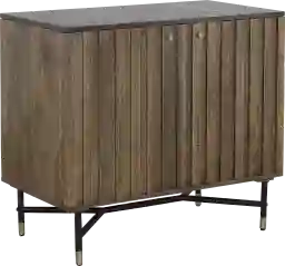 Add storage for all of your serving essentials while making a statement with this Oaklett two door bar cabinet. The naturally sourced black marble top features unique white veining and is supported by a solid mango wood frame. Metal accents and hardware add a touch of gold to the lightly stained natural mango wood finish. The interior features two fixed shelves, stemware rack, and a convenient six bottle storage compartment. With its high quality craftsmanship and sleek design, it will make a statement in any home for years to come. Customer assembly is required.
