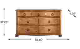 Measuring 65.25 inches in width, this is a substantial "double dresser" designed to act as a focal point in a primary suite. While its 18.75-inch depth is relatively streamlined, we recommend ensuring you have at least 30 to 36 inches of clearance in front of the unit to fully extend the drawers and allow for comfortable passage. For tighter urban spaces, its traditional bun feet and curved front add a sense of elegance without a bulky footprint.