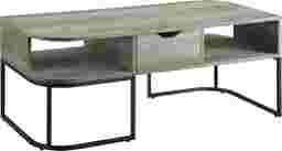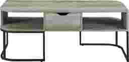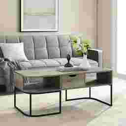 The Oakpath is a beautiful, geometric coffee table held up by sleek, powder-coated metal legs. Featuring a center drawer opening from either side of the cocktail table, which makes a perfect home for remotes and other electronic accessories. And the curvy tabletop looks great in any setting while minimizes the chance for bumping your legs on corners. Yep. This one has just about everything you need to create a perfectly styled home. Customer assembly is required.
